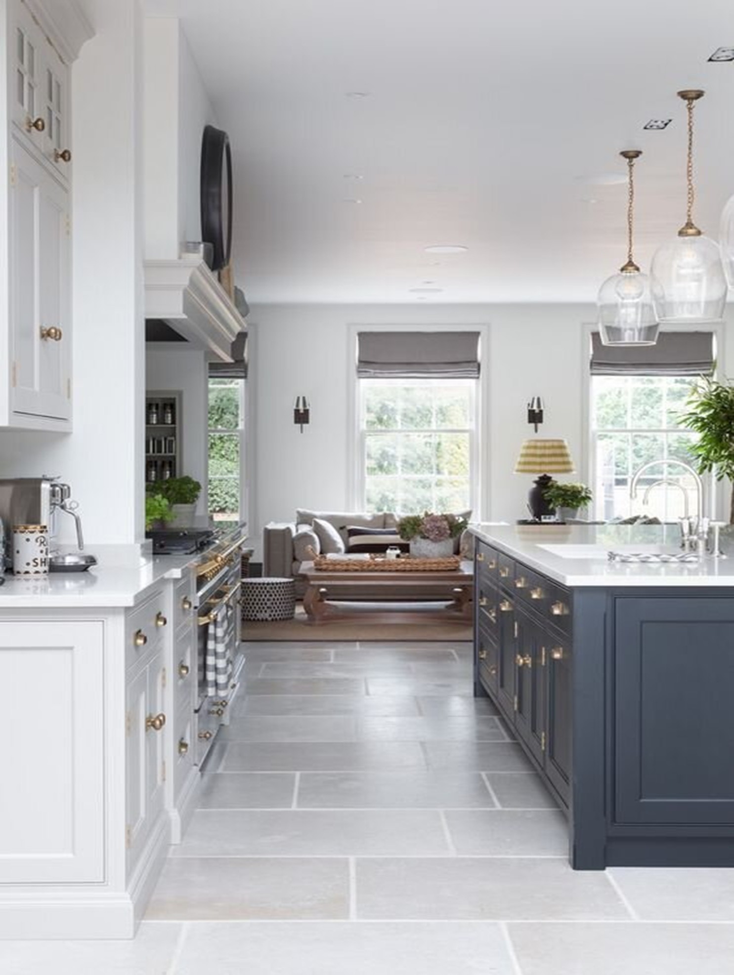 سنگ آهک یک انتخاب کلاسیک، زیبا و یکی از بهترین انتخابها برای کفپوش آشپزخانه است. این سنگ بادوام است و میتواند در برابر رفت و آمد زیاد، رطوبت، ریختن مایعات و تمیز کردن مداوم در آشپزخانه مقاومت کند. این آشپزخانه لوکس و زیبا دارای کفپوش سنگ آهک خاکستری ملایم و جاودانه است.