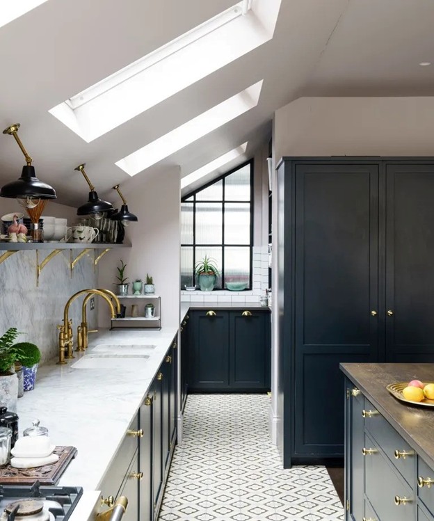 یک طراح، میگوید: «در یک تغییر جسورانه از کابینتهای کلاسیک تمام سفید یا روکش چوبی، صاحبخانهها اکنون کابینتهای سرمهای تیره یا سبز زمردی غنی را انتخاب میکنند که جلوهای قوی و پیچیده ایجاد میکنند.